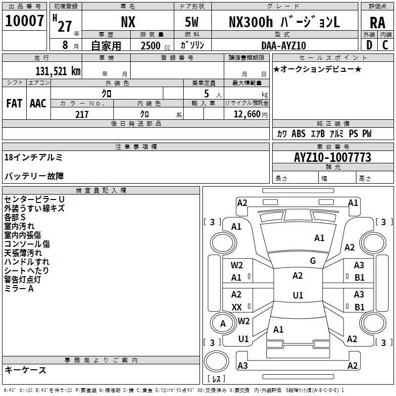 Год выпуска2015 Пробег 132 000 км КузовAYZ10 КомплектацияNX300H VERSION L