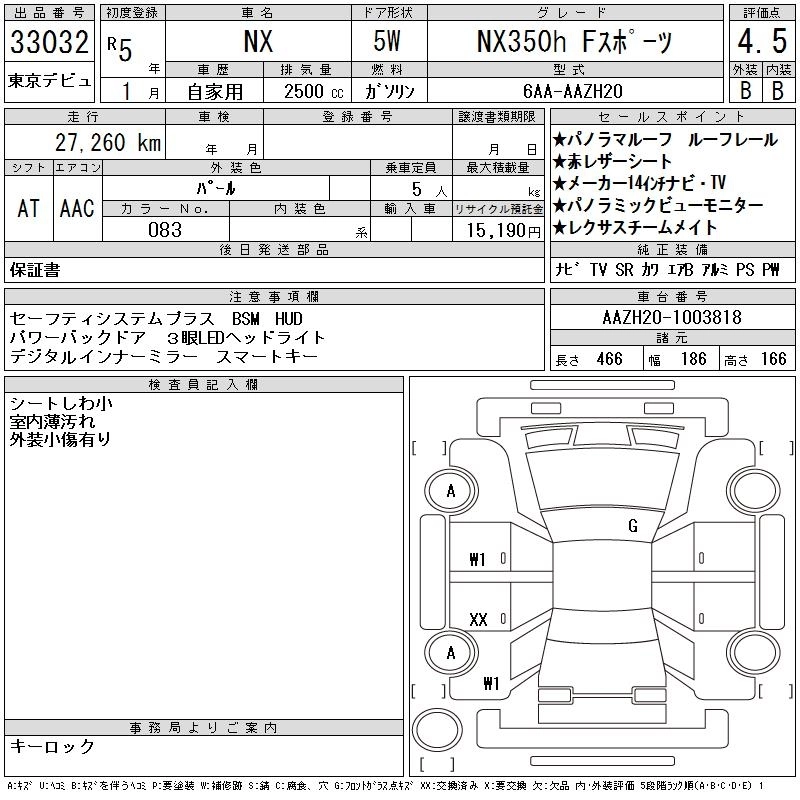 Год выпуска2023 Пробег 27 000 км КузовAAZH20 КомплектацияNX350H F SPORT