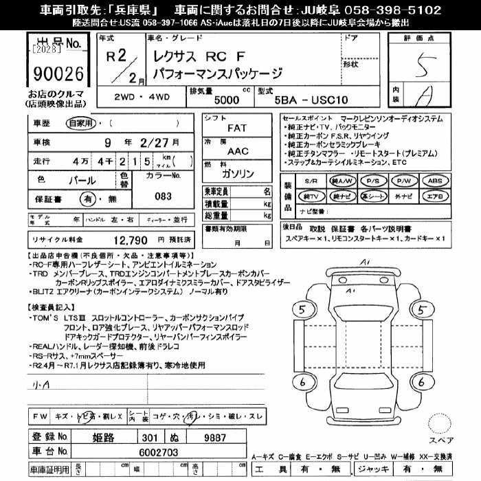 LEXUS RC F 2020 г., лот № 90026