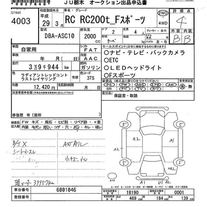 LEXUS RC 2017 г., лот № 4003