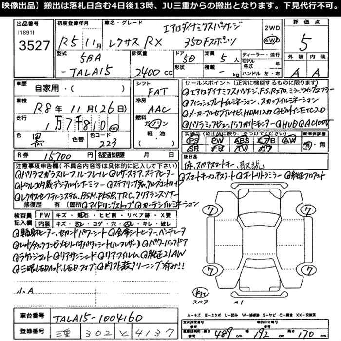 LEXUS RX 2023 г., лот № 3527