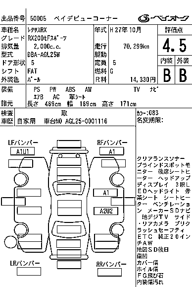 LEXUS RX 2015 г., лот № 50005