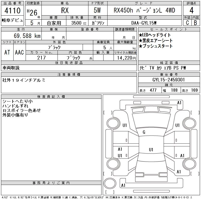 LEXUS RX 2014 г., лот № 4110