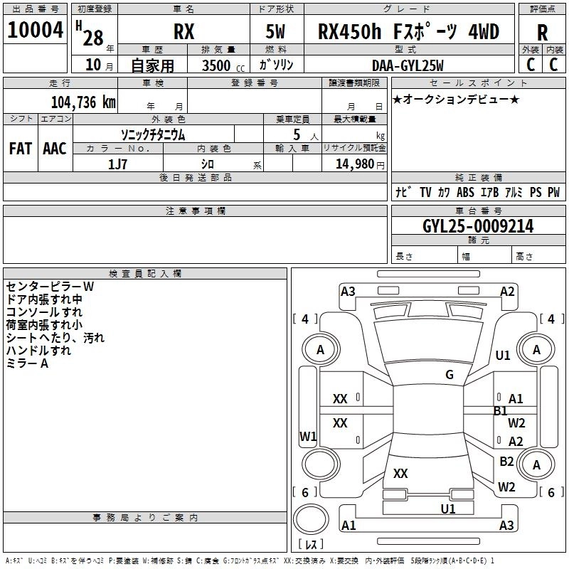 Год выпуска2016 Пробег 105 000 км КузовGYL25W КомплектацияRX450H F SPORT 4WD