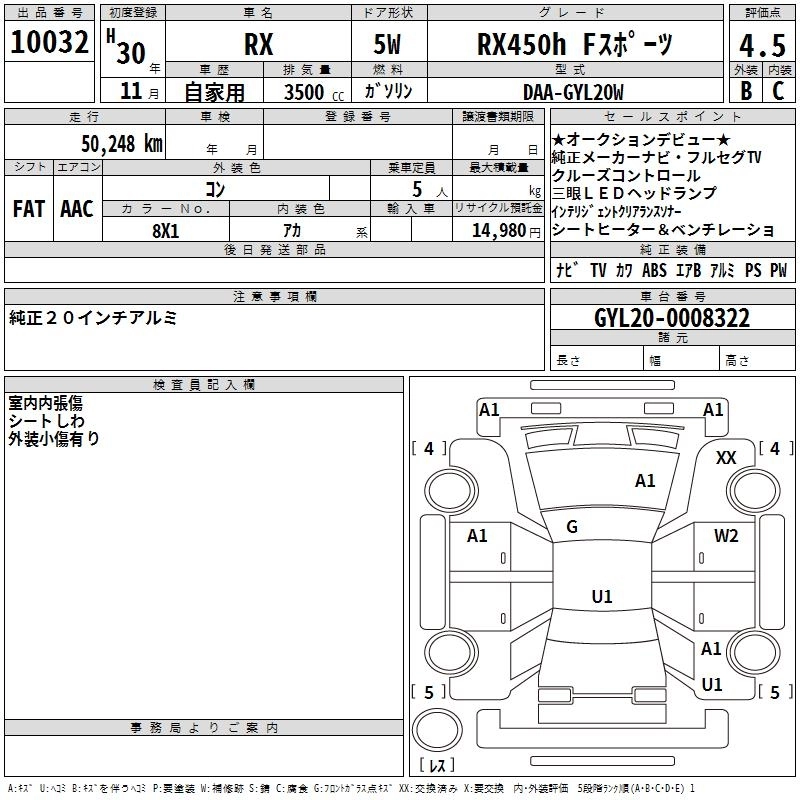 Год выпуска2018 Пробег 50 000 км КузовGYL20W КомплектацияRX450H F SPORT