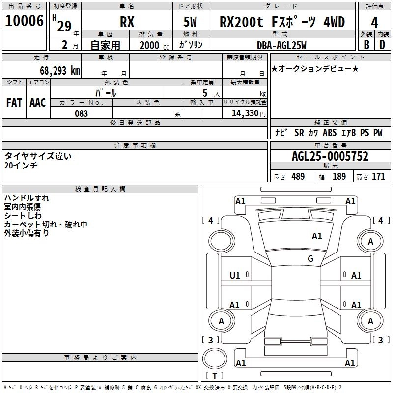 Год выпуска2017 Пробег 68 000 км КузовAGL25W КомплектацияRX200T F SPORT 4WD