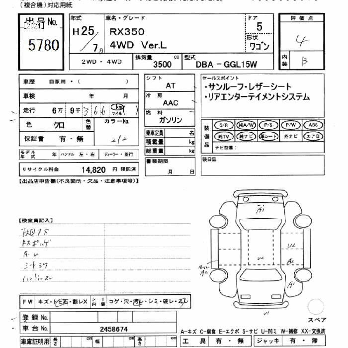 LEXUS RX 2013 г., лот № 5780