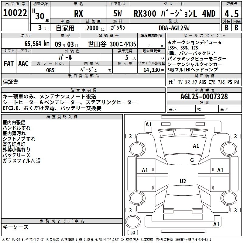 Год выпуска2018 Пробег 66 000 км КузовAGL25W КомплектацияRX300 VERSION L 4WD