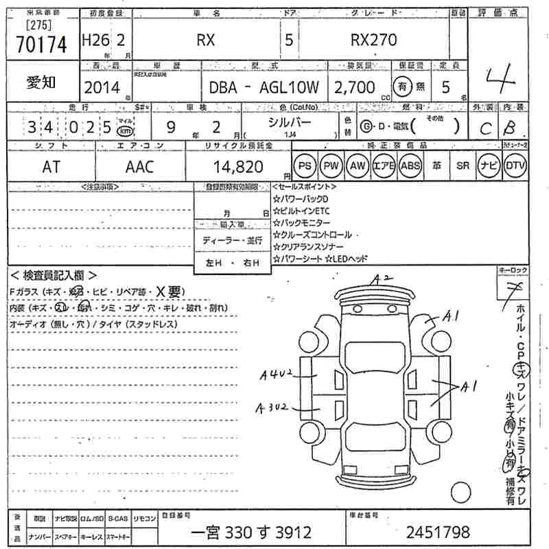 LEXUS RX 2014 г., лот № 70174