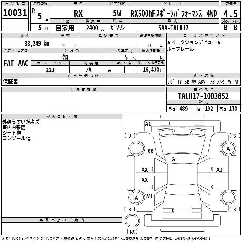Год выпуска2023 Пробег 38 000 км КузовTALH17 КомплектацияRX500HF SPORTS PA FO4WD