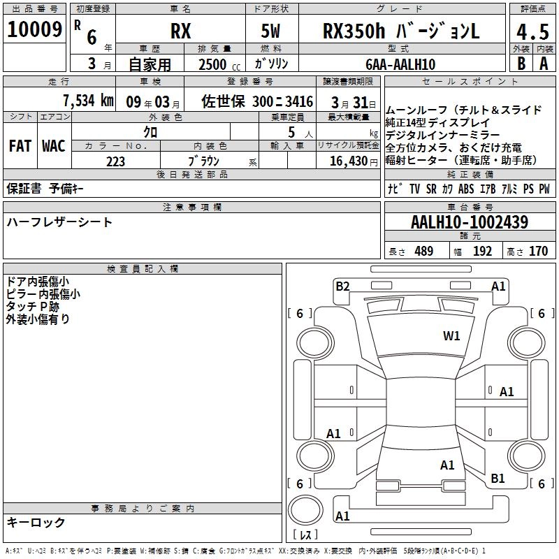 Год выпуска2024 Пробег 8 000 км КузовAALH10 КомплектацияRX350H VERSION L