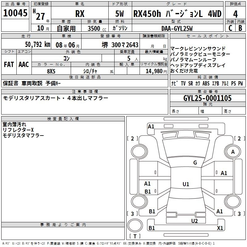 Год выпуска2015 Пробег 51 000 км КузовGYL25W КомплектацияRX450H VERSION L 4WD