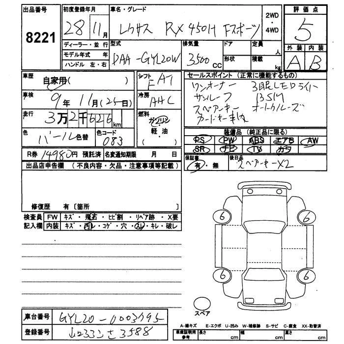LEXUS RX 2016 г., лот № 8221
