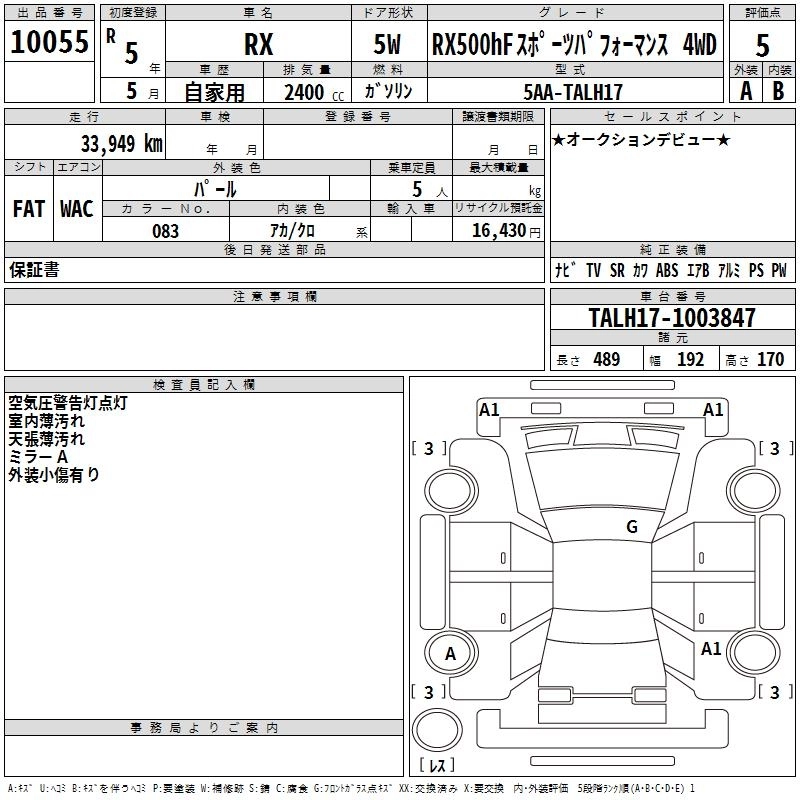 Год выпуска2023 Пробег 34 000 км КузовTALH17 КомплектацияRX500HF SPORTS PA FO4WD