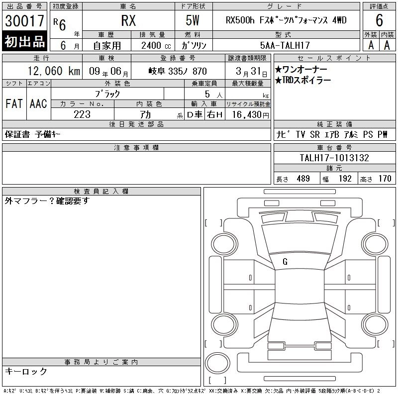 Статус выставлен на аукцион Лот 30017 Аукцион CAA Gifu Дата аукциона 10.03.2026