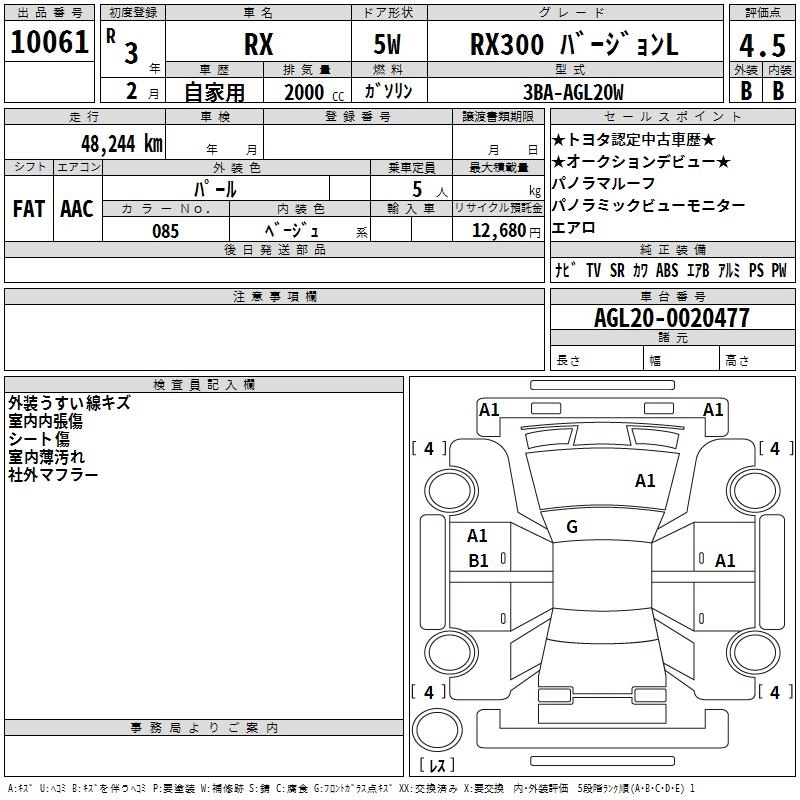 Год выпуска2021 Пробег 48 000 км КузовAGL20W КомплектацияRX300 VERSION L