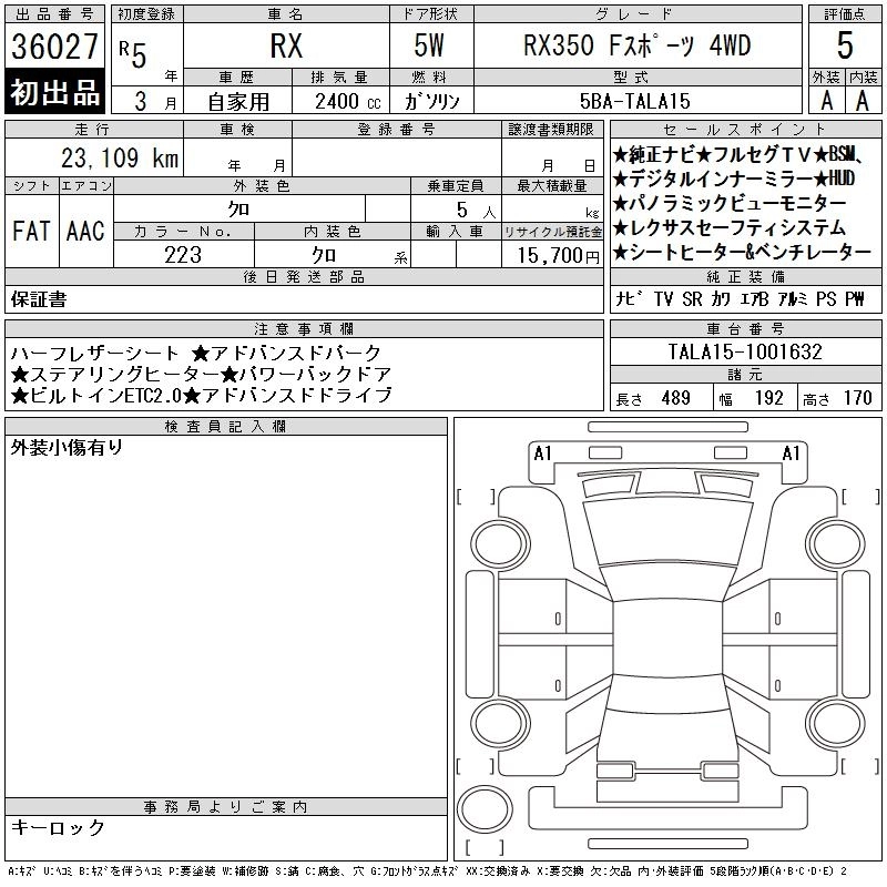 LEXUS RX 2023 г., лот № 36027