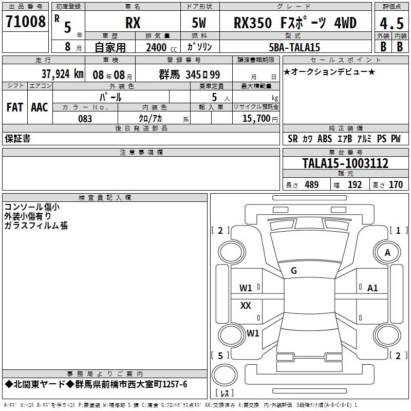 Статус выставлен на аукцион Лот 71008 Аукцион TAA Kantou Дата аукциона 12.03.2026