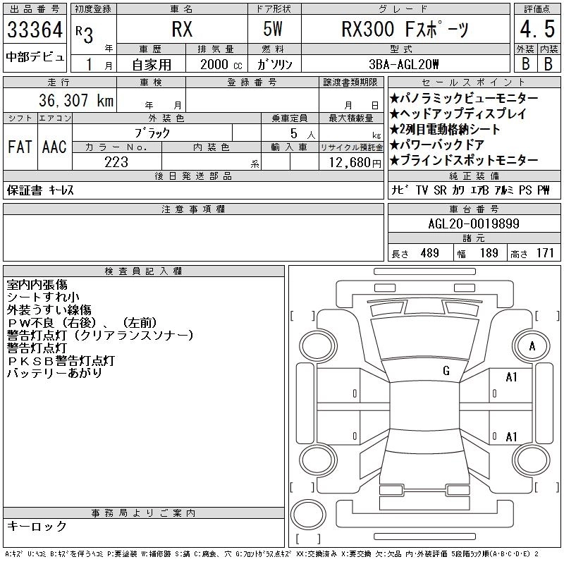 Год выпуска2021 Пробег 36 000 км КузовAGL20W КомплектацияRX300 F SPORT