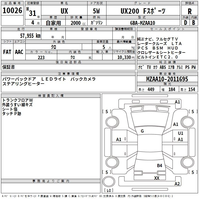 Год выпуска2019 Пробег 58 000 км КузовMZAA10 КомплектацияUX200 F SPORT
