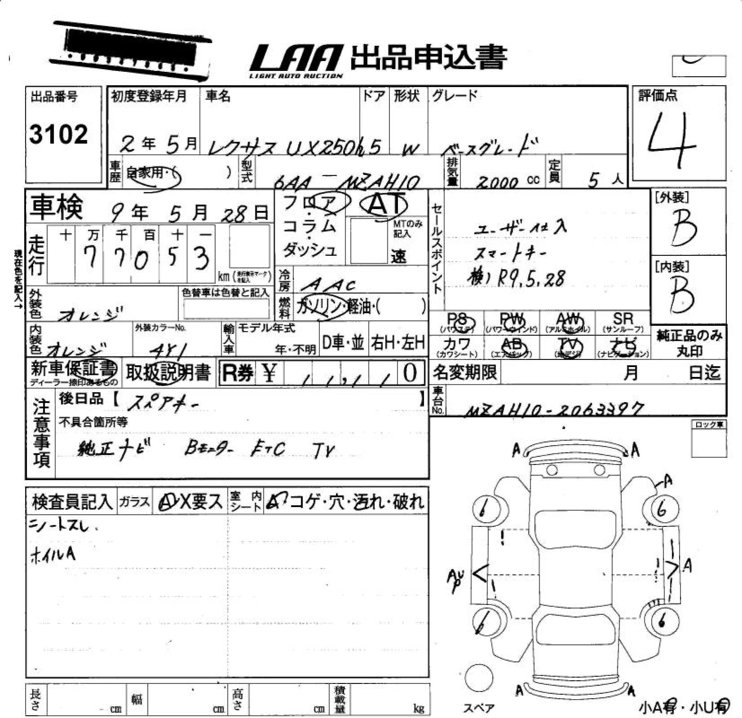 Статус не продан Лот 3102 Аукцион LAA Okayama Дата аукциона 23.01.2026
