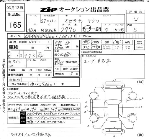 MASERATI GHIBLI 2015 г., лот № 165