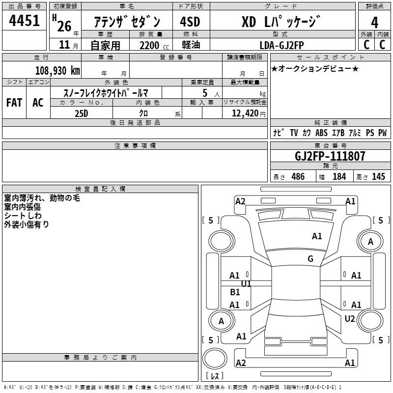 MAZDA ATENZA SEDAN 2014 г., лот № 4451