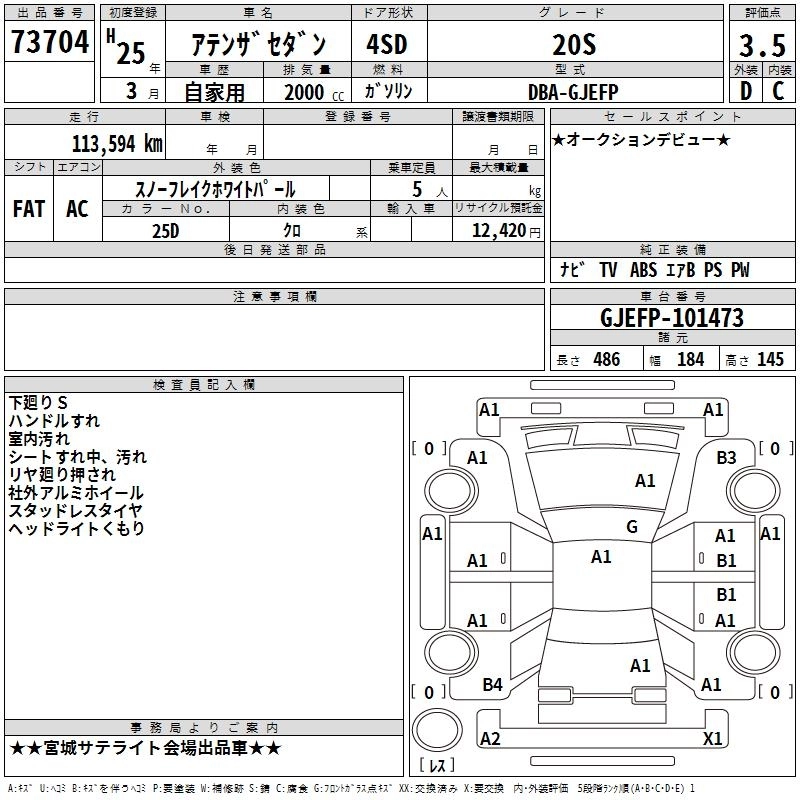 MAZDA ATENZA SEDAN 2013 г., лот № 73704