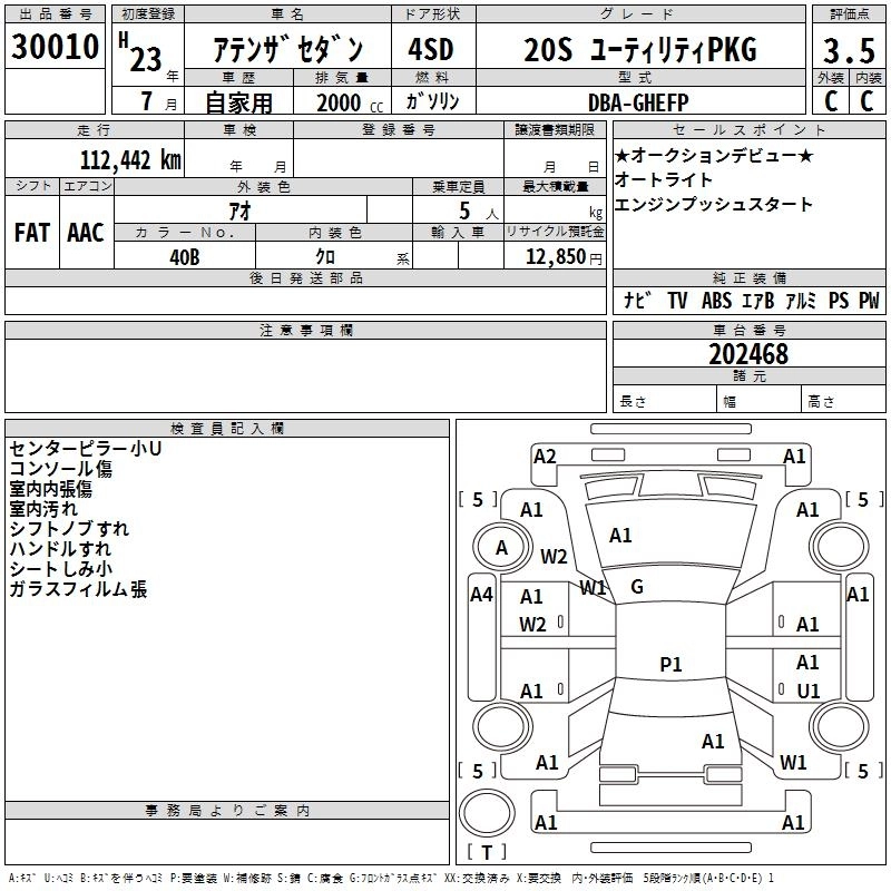 MAZDA ATENZA SEDAN 2011 г., лот № 30010