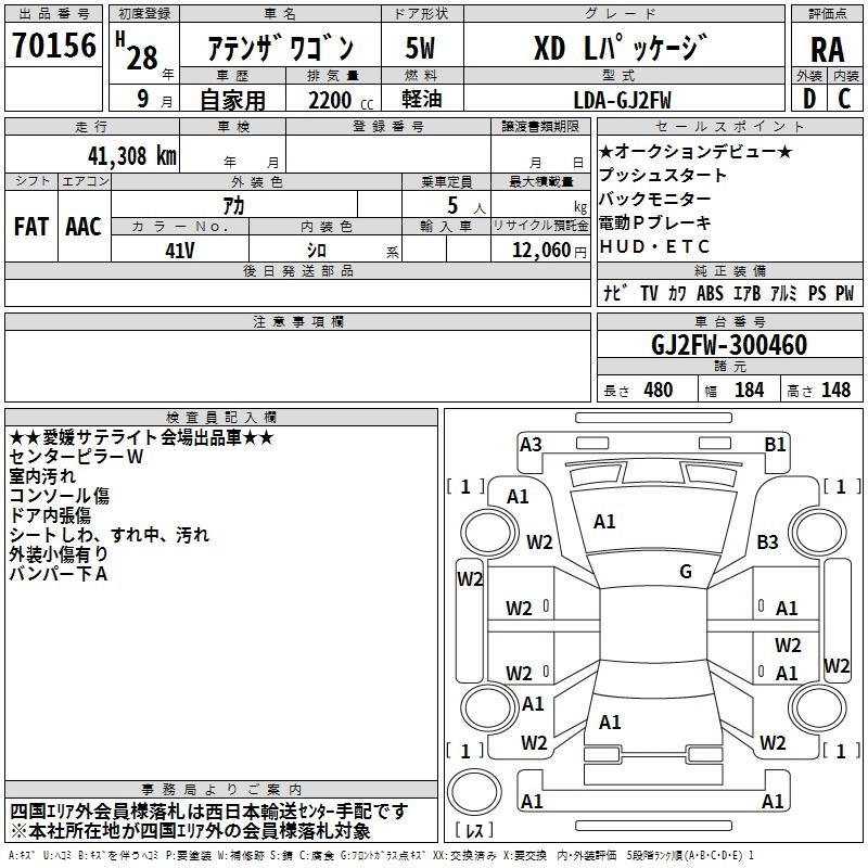 MAZDA ATENZA WAGON 2016 г., лот № 70156