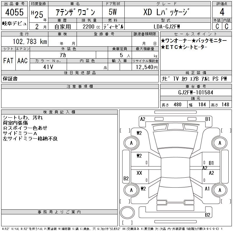 MAZDA ATENZA WAGON 2013 г., лот № 4055
