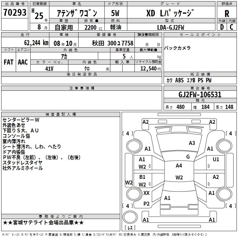 MAZDA ATENZA WAGON 2013 г., лот № 70293