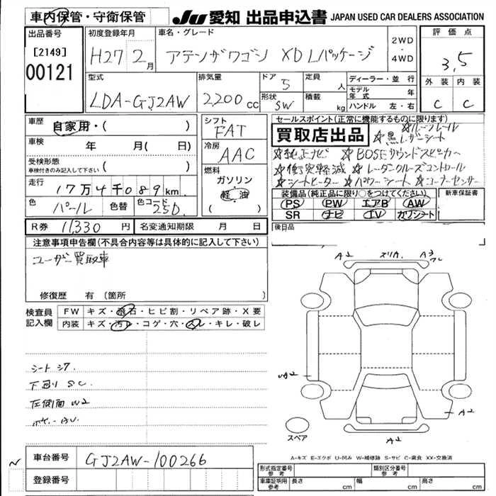 Статус выставлен на аукцион Лот 121 Аукцион JU Aichi Дата аукциона 12.03.2026