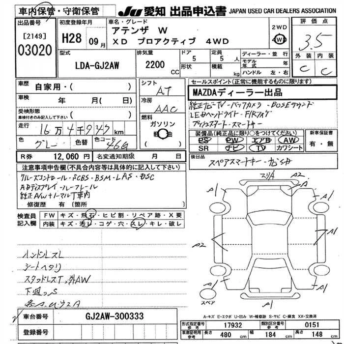 MAZDA ATENZA WAGON 2016 г., лот № 3020