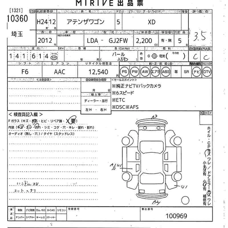 MAZDA ATENZA WAGON 2012 г., лот № 10360