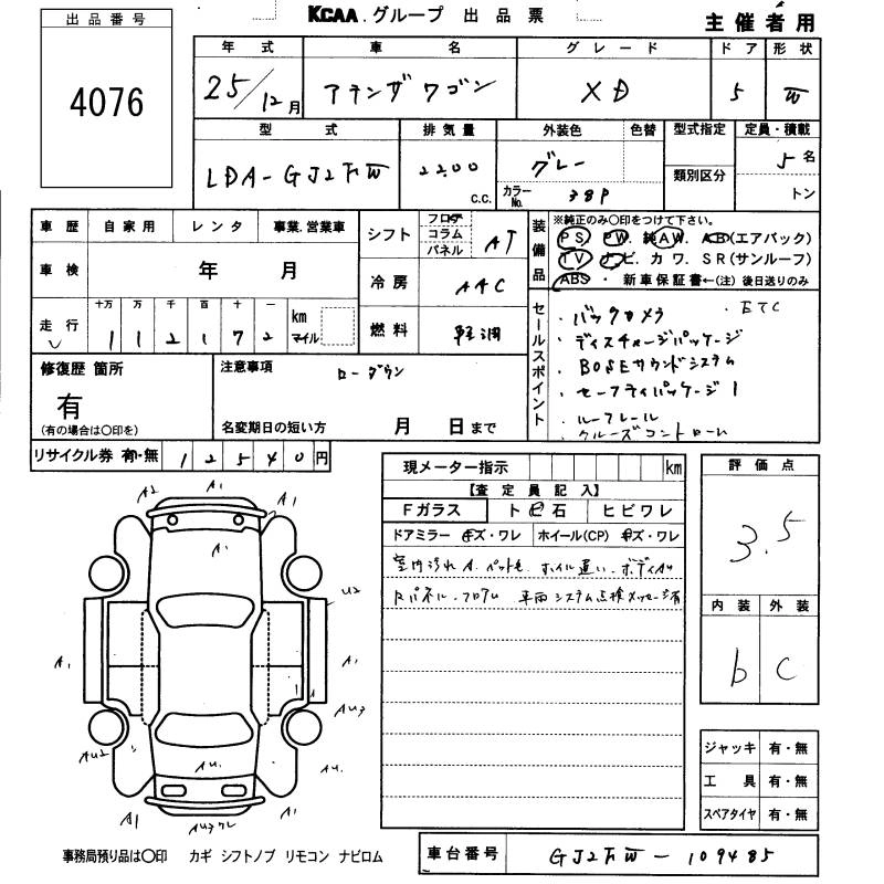 MAZDA ATENZA WAGON 2013 г., лот № 4076