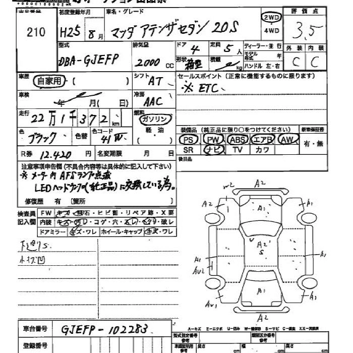 MAZDA ATENZA 2013 г., лот № 210