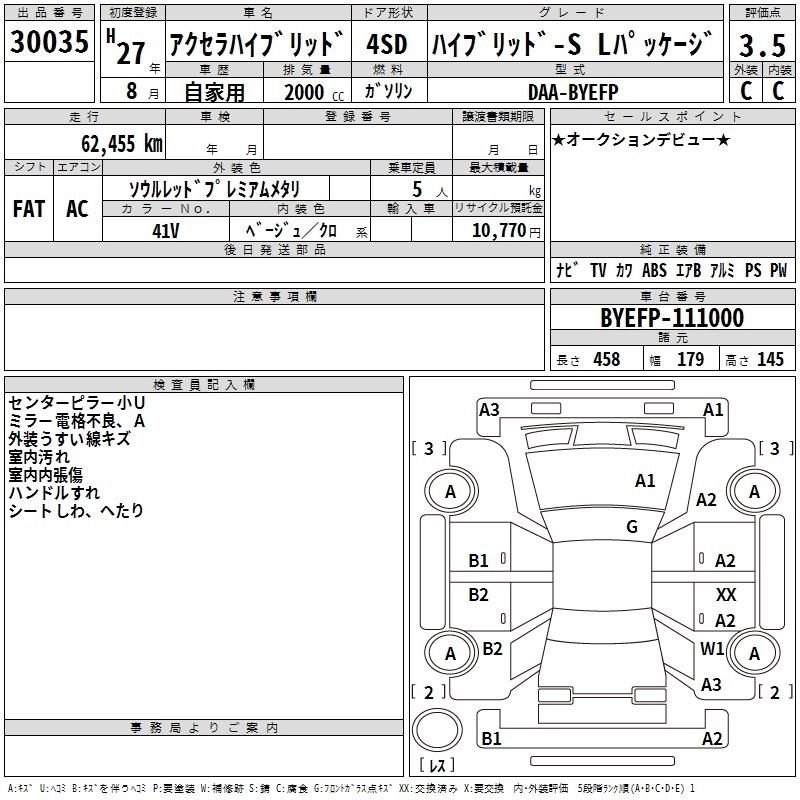MAZDA AXELA HYBRID 2015 г., лот № 30035