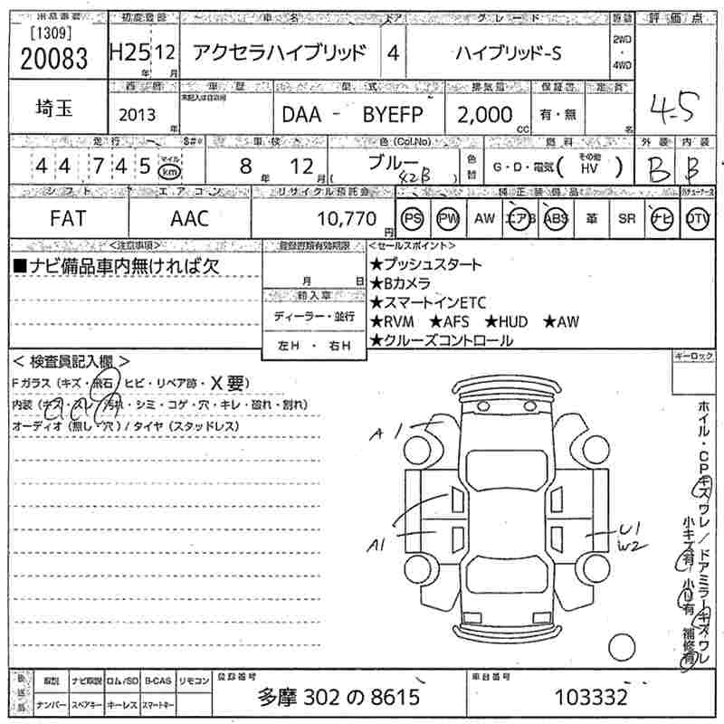 MAZDA AXELA HYBRID 2013 г., лот № 20083