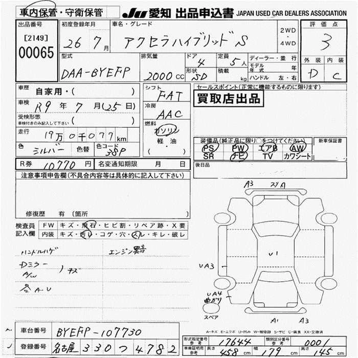 MAZDA AXELA HYBRID 2014 г., лот № 65