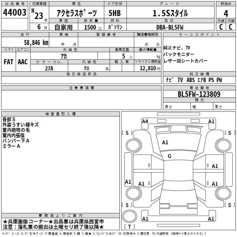 MAZDA AXELA SPORT 2011 г., лот № 44003