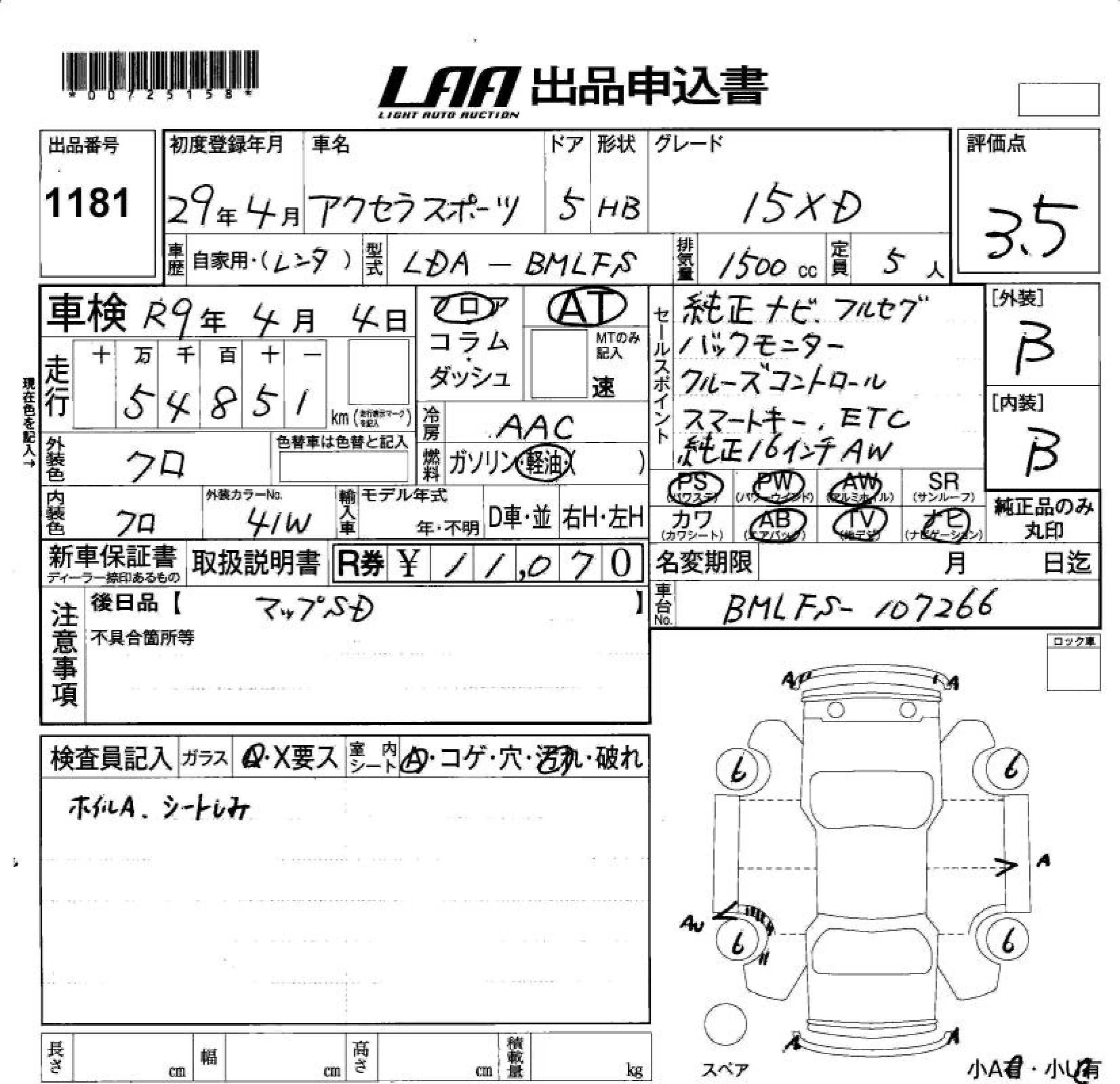 MAZDA AXELA SPORT 2017 г., лот № 1181