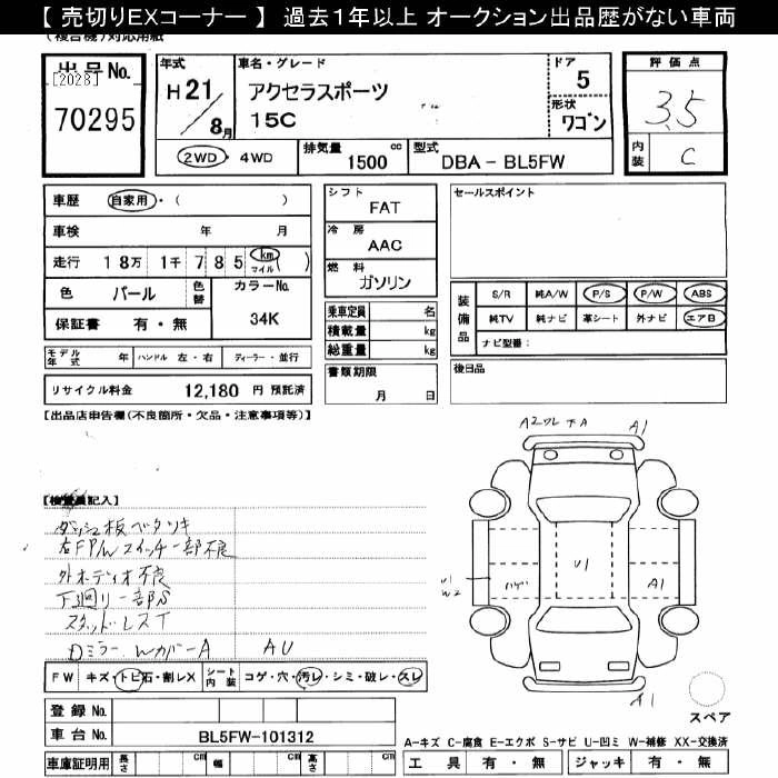 Год выпуска2009 Пробег 181 000 км КузовBL5FW Комплектация15C