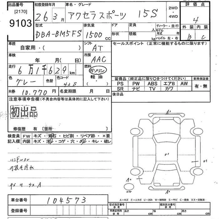 Статус выставлен на аукцион Лот 9103 Аукцион JU Tokyo Дата аукциона 26.01.2026