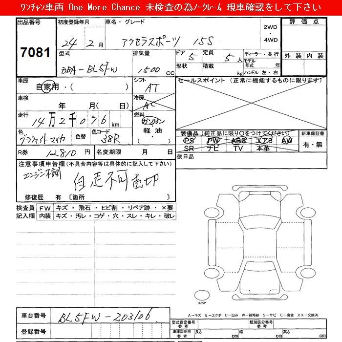 Статус выставлен на аукцион Лот 7081 Аукцион JU Shizuoka Дата аукциона 10.03.2026