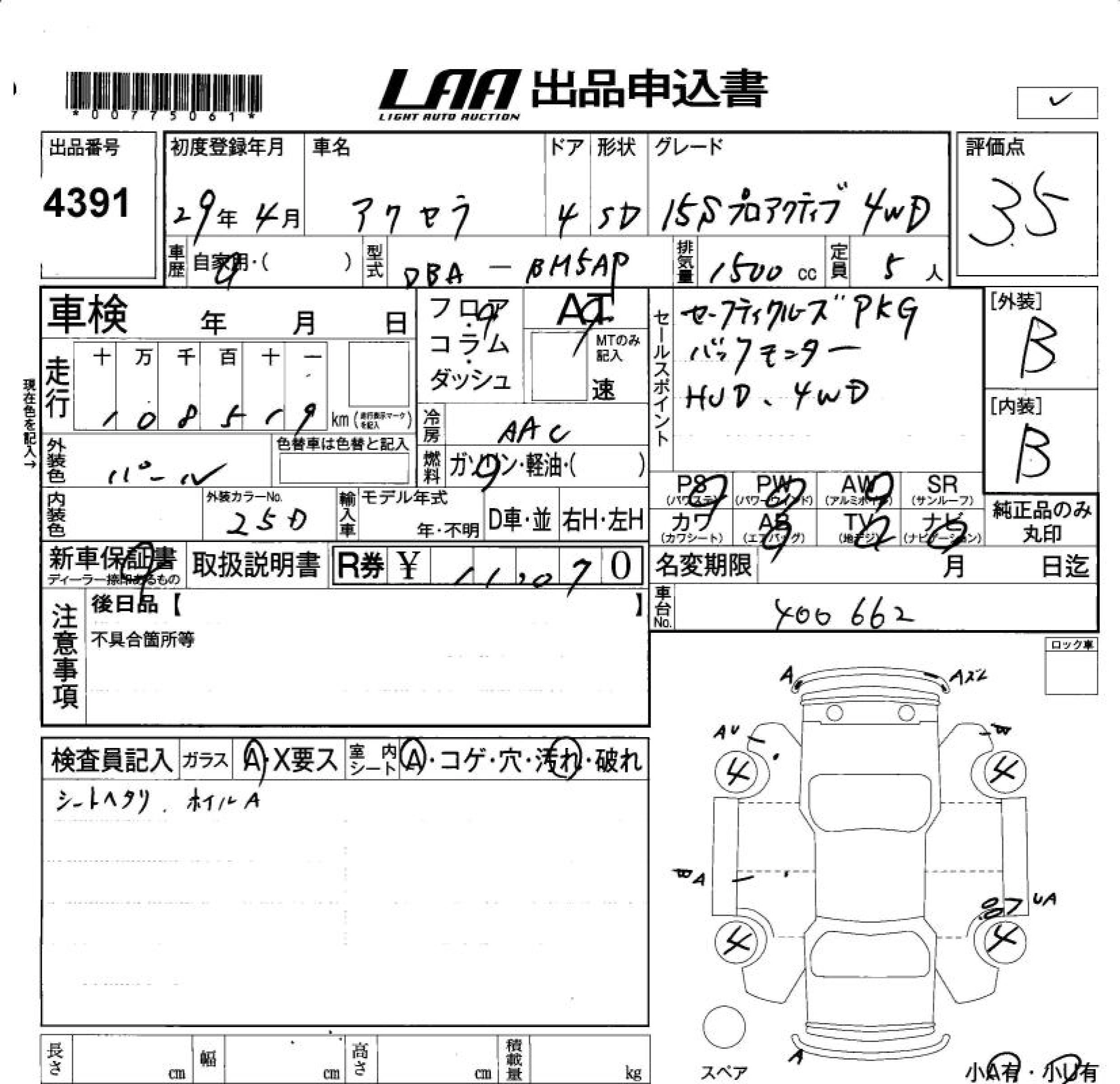 Статус не продан Лот 4391 Аукцион LAA Okayama Дата аукциона 23.01.2026