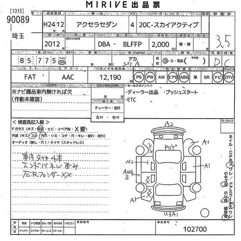 MAZDA AXELA 2012 г., лот № 90089