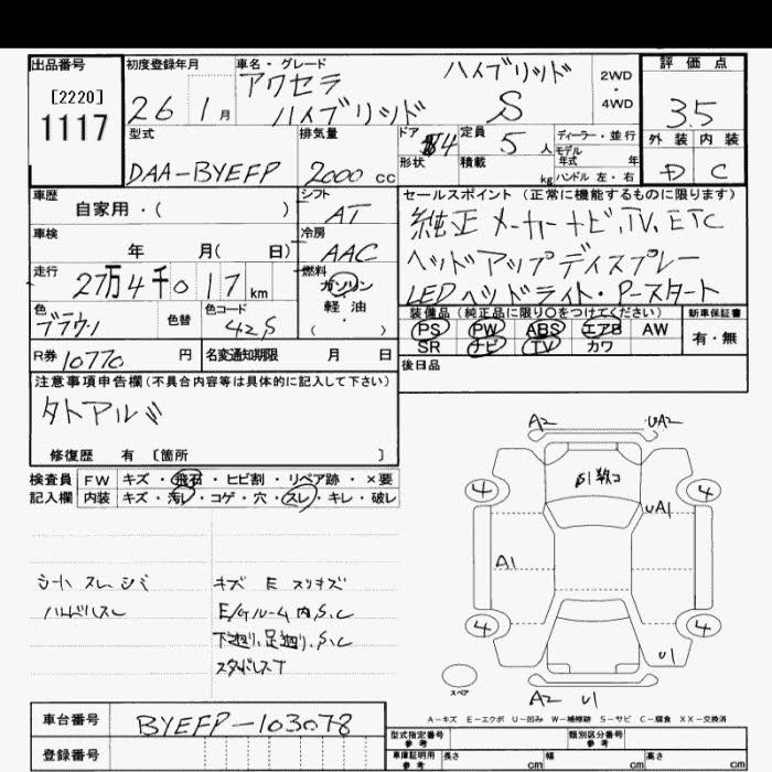 MAZDA AXELA 2014 г., лот № 1117
