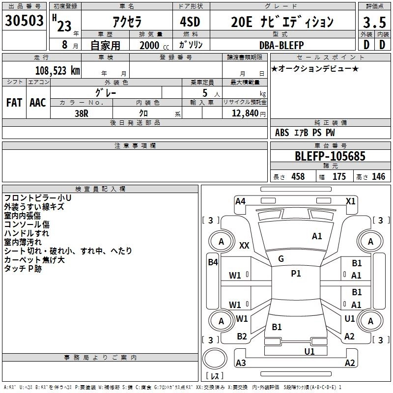MAZDA AXELA 2011 г., лот № 30503