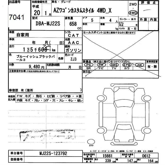 MAZDA AZ WAGON CUSTOM STYLE 2008 г., лот № 7041